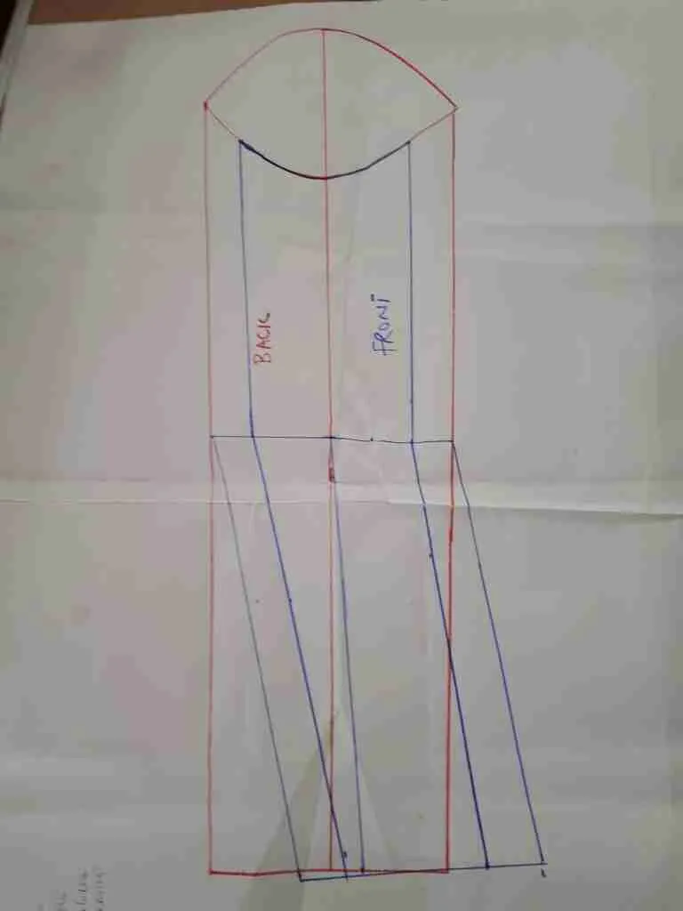 The first thing to do is to measure your wrist to elbow measurement.My wrist to elbow measurement is 27 cm. You will mark this on the center line of the sleeve eye.Then draw a vertical line joining the two sleeve lines.
